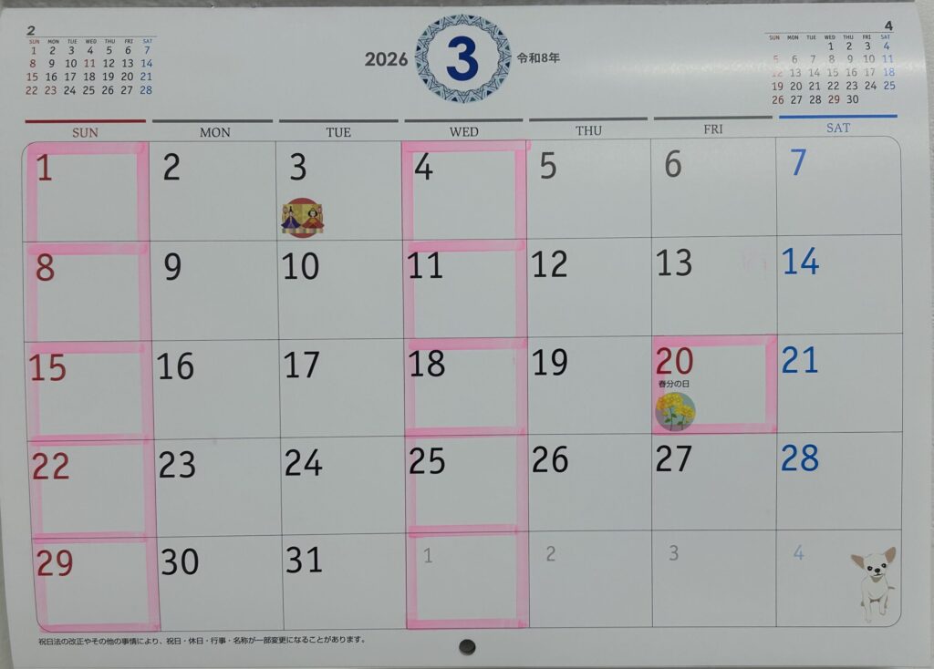 3月休診日